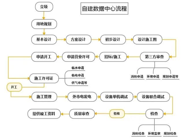 選址條件具備后進行立項,立項時要編制可研報告,立項后同步辦理各種手續(xù),能評、環(huán)評、穩(wěn)評、安評、規(guī)劃許可、施工許可、供電方案、消防等,能評需要第三方編制能評報告,環(huán)評需要編制環(huán)境評估報告,值得注意的是,如果數(shù)據(jù)中心配置柴發(fā)和儲油罐,那么需要編制環(huán)境評估報告,一般流程3個月左右,如果沒有配置儲油罐,那么直接做環(huán)境備案登記即可,一般一周能即可完成。每個地方要求不一樣,以地方要求為準。