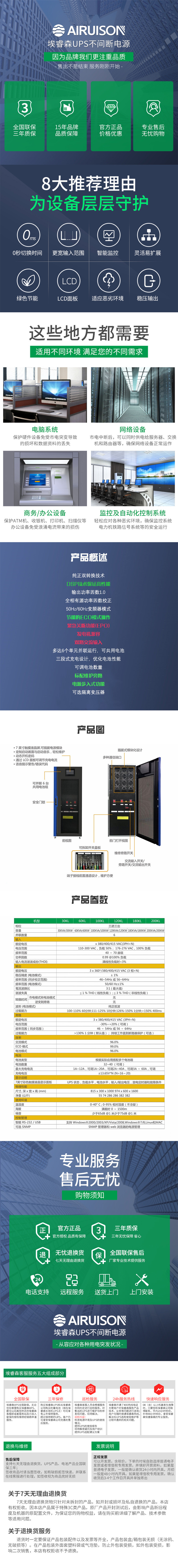 埃睿森 UPS不間斷電源 高頻UPS三進三出 HJ系列 30-200KVA