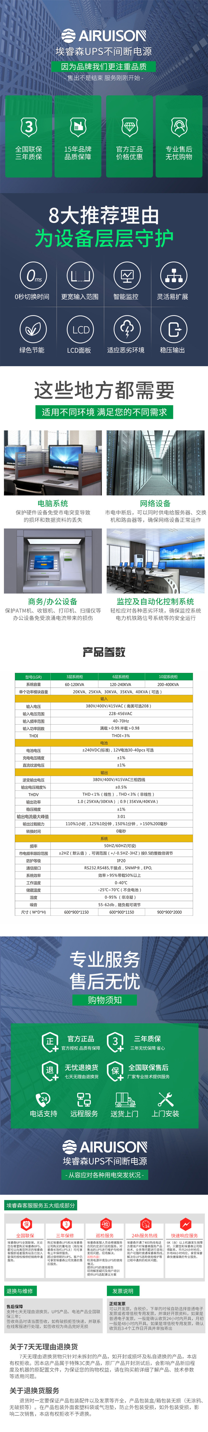 埃睿森 UPS不間斷電源 工頻UPS三進三出 HJ系列 100-800KVA