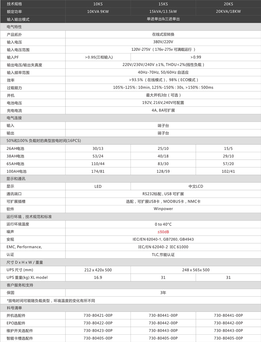 負載提供安全可靠的電源保障。城堡系列3C10KS ~ 3C20KS 是一款具有強大適應性、配置靈活的產品,